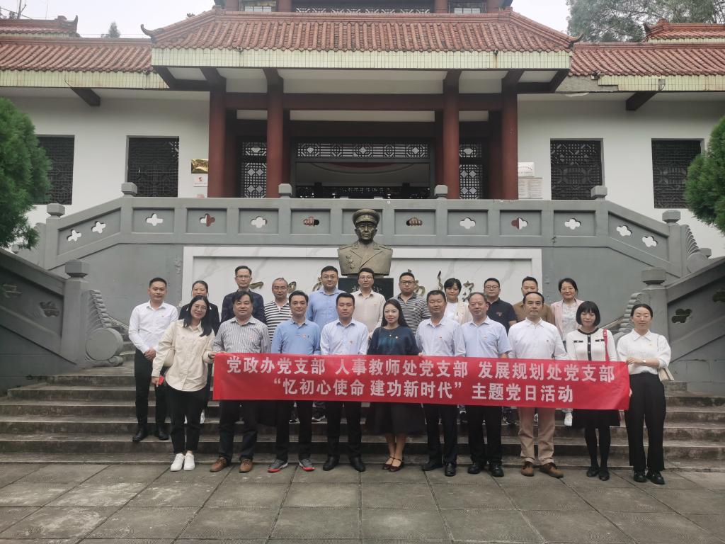 为深入学习贯彻习近平新时代中国特色社会主义思想,落实党的二十大精神,提高全体党员运用党的创新理论指导工作的能力,10月17日,党政办公室、发展规划处、人事教师处党支部共赴射洪市贺诚生平陈列馆、学校射洪锂电科技学院、龙凤产学研园区等参观调研,联合开展“忆初心使命,建功新时代”主题党日活动。