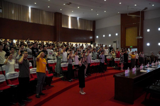 在《义勇军进行曲》的庄严旋律中,四川职业技术学院新入职教师培训开班仪式拉开序幕。教师代表卢霜带领全体新进教师肃立握拳,庄严宣誓:“我志愿成为一名人民教师,忠诚党的教育事业,遵守教育法律法规,履行教书育人职责,引领学生健康成长,做到有理想信念、有道德情操、有扎实学识、有仁爱之心,为教育发展、国家繁荣和民族振兴努力奋斗!”