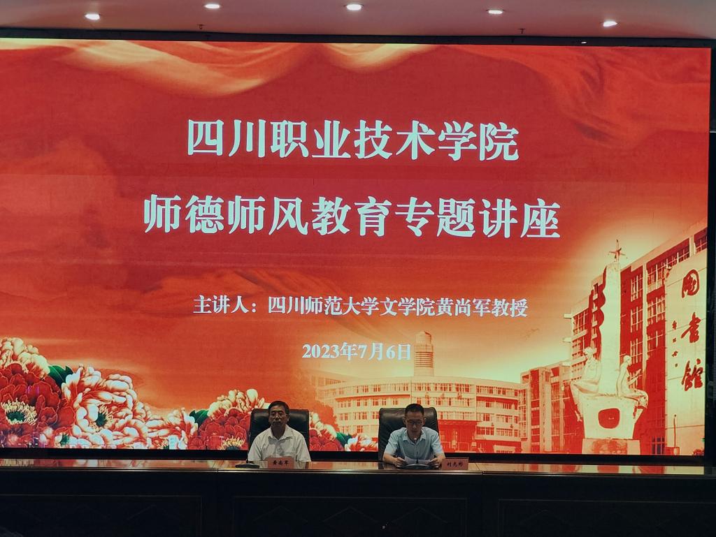 为进一步加强我校师德师风建设,提升教职工师德涵养,7月6日,学校特邀四川师范大学文学院教授、硕士生导师、全国师德标兵、四川省创先争优优秀共产党员、四川省优秀教师、首批全国高校黄大年式教师团队“巴蜀文化研究与传承”与四川省社科高水平团队“四川濒危活态文献保护研究”负责人黄尚军在学术报告厅为全校二级科长以上干部作师德师风专题讲座。讲座由党委委员、副校长刘光彬主持。