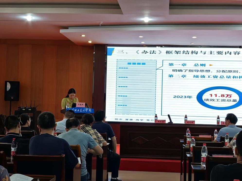 人事教师处副处长罗蓝燕向大会报告了《四川职业技术学院绩效工资实施办法》(以下简称《办法》)起草有关情况,就《办法》编制情况、编制依据、办法框架结构与主要内容、新旧方案主要参数比较分析等内容进行了全面详细解读。
